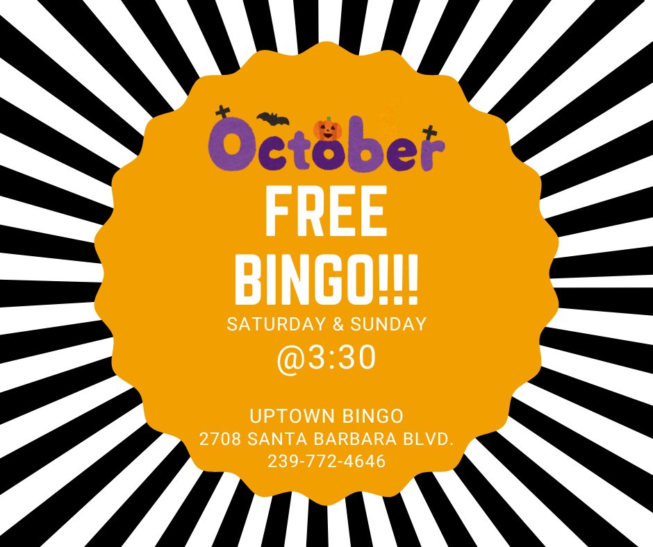 You can reach us at 239.772.4646 (239.77.BINGO). We are here 7 days a week, starting at 10:30 A.M., to answer your questions. You can also stop by, follow us on "Facebook" @ Uptown-Bingo-of-Cape-Coral (click the fb logo above), or you can contact us at our e-mail address: office@uptownbingo.org